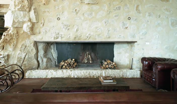 Na Casa Luna Llena, a lareira de pedra no meio da sala chama a atenção. “Encontramos um lindo monolítico – espécie de rocha – durante o preparo do terreno e decidimos reservá-lo até que surgisse uma oportunidade de usá-lo”, conta Candida Tabet, responsável pelo projeto e titular do escritório de mesmo nome.